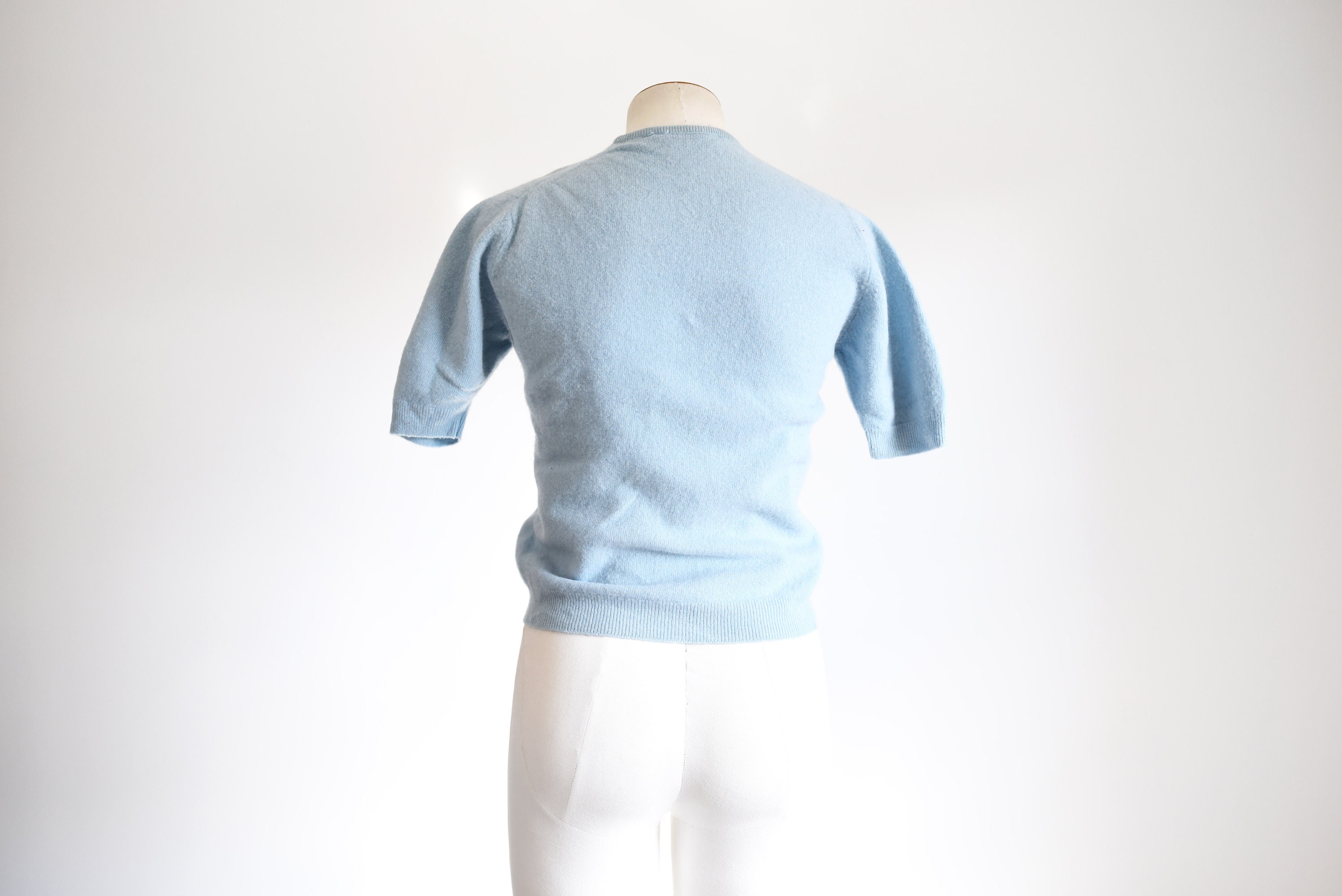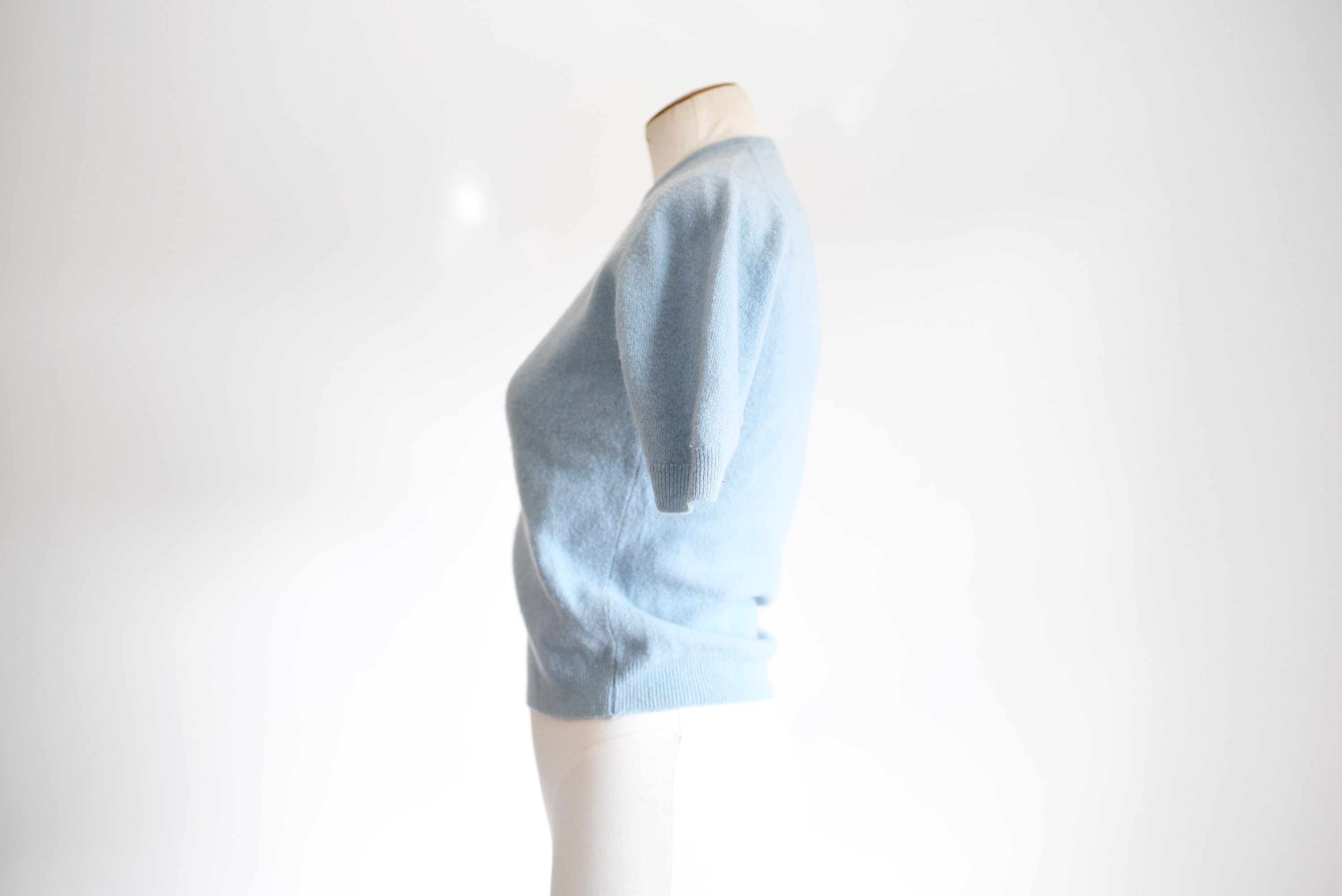 Description: Short sleeve baby blue wool sweater.